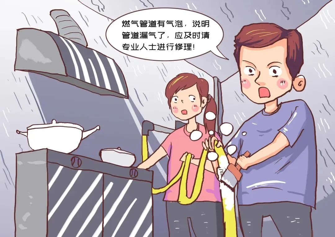 (1)燃?xì)庑孤?/strong>當(dāng)嗅到臭味時(shí),液化石油氣可能已出現(xiàn)泄露,此時(shí)應(yīng)斷絕一切明火,將肥皂水涂抹鋼瓶的角閥、調(diào)壓器、灶具開關(guān)和膠管等處檢查,如果涂抹處冒出氣泡,說明已經(jīng)漏氣,應(yīng)立即關(guān)閉鋼瓶角閥,打開門窗通風(fēng),禁止使用手機(jī)或碰觸電器開關(guān),移至通風(fēng)安全處向供氣單位報(bào)修。