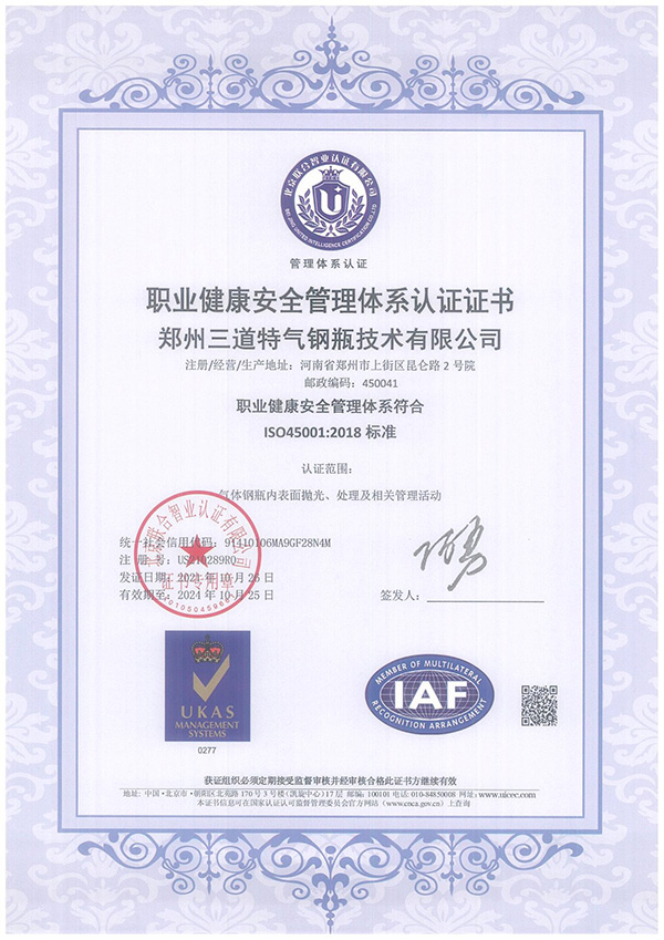 職業(yè)健康安全管理體系認證證書